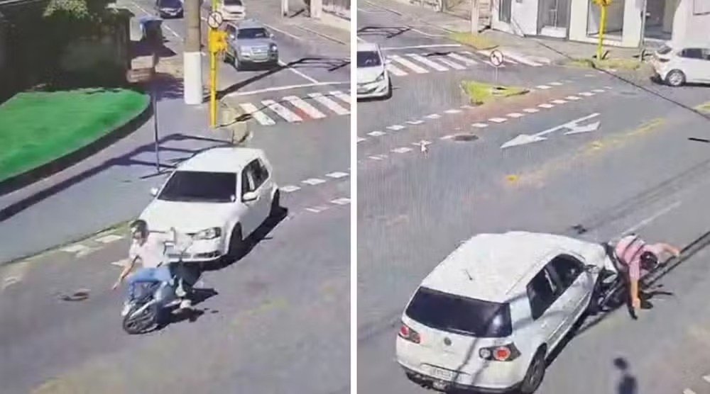 Funcionário concursado da Secretaria de Trânsito atropelou dois motociclistas após briga no trânsito; câmeras flagraram a ação.