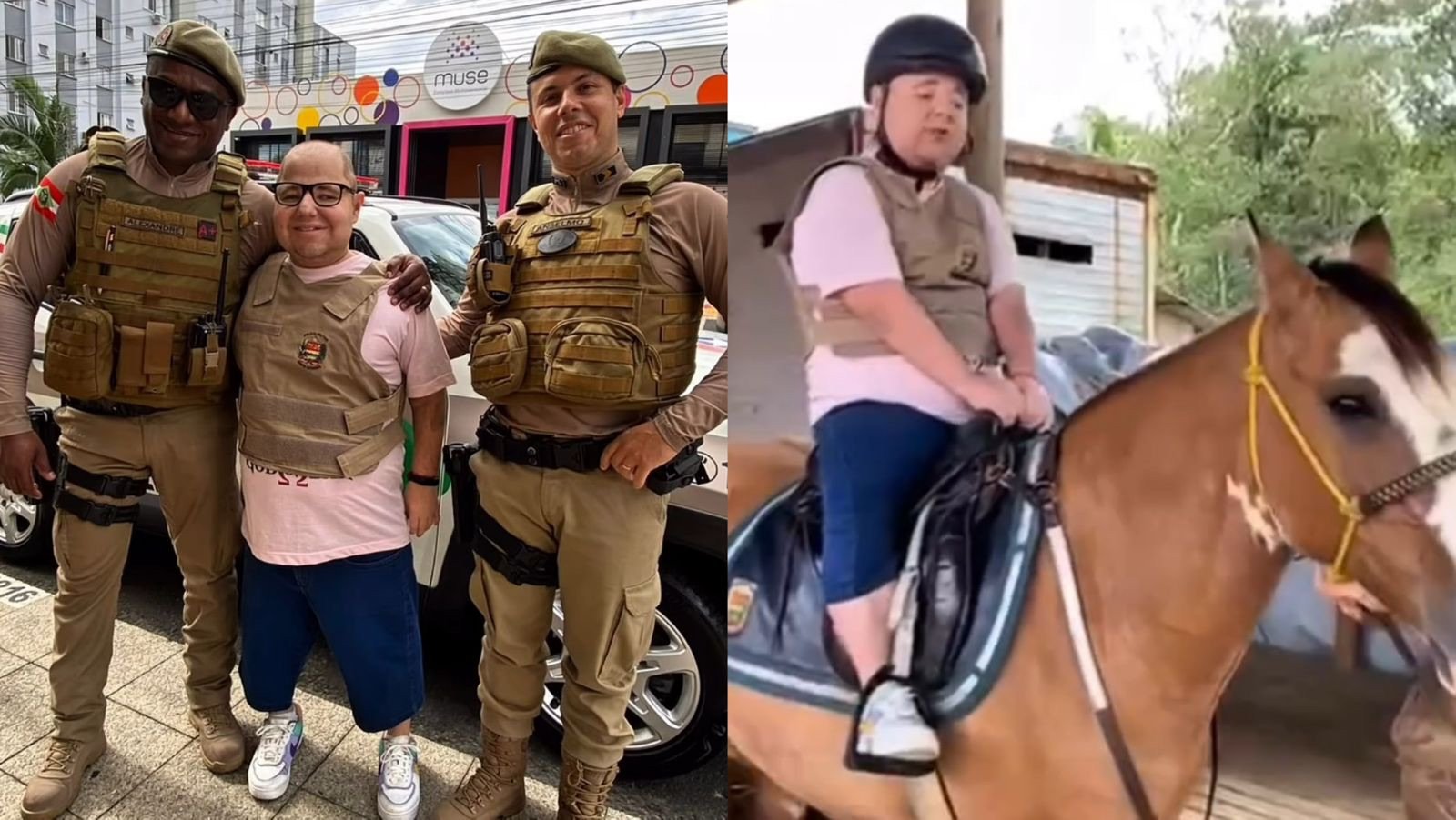 Jovem de 27 anos com Síndrome de Prader-Willi realiza sonho de andar a cavalo em ação da Polícia Militar